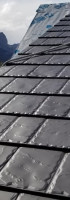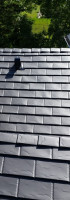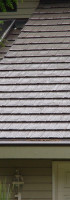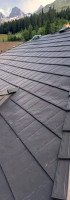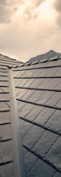 is intended to simulate the look of old world slate. It is made using the same base metal as our other roofing products. It is an interlocking, hidden fastener system, just like our Ironwood Shake. The hip/ridge cap on this profile is also interlocking and each cap covers the fasteners on the previously installed cap.